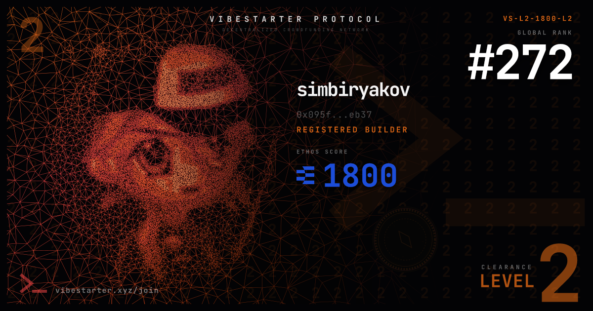 © 2026 Vibestarter. All rights reserved.Built on Base — the on-chain home of AI agents.
